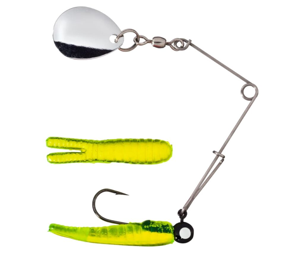 Designed with a compact, soft split-tail grub body, these jig-style Beetle Spins mimic the natural movement of small baitfish. They can be fished solo for bottom feeders or paired with a bobber for suspended fish, offering unmatched versatility for panfish and trout.